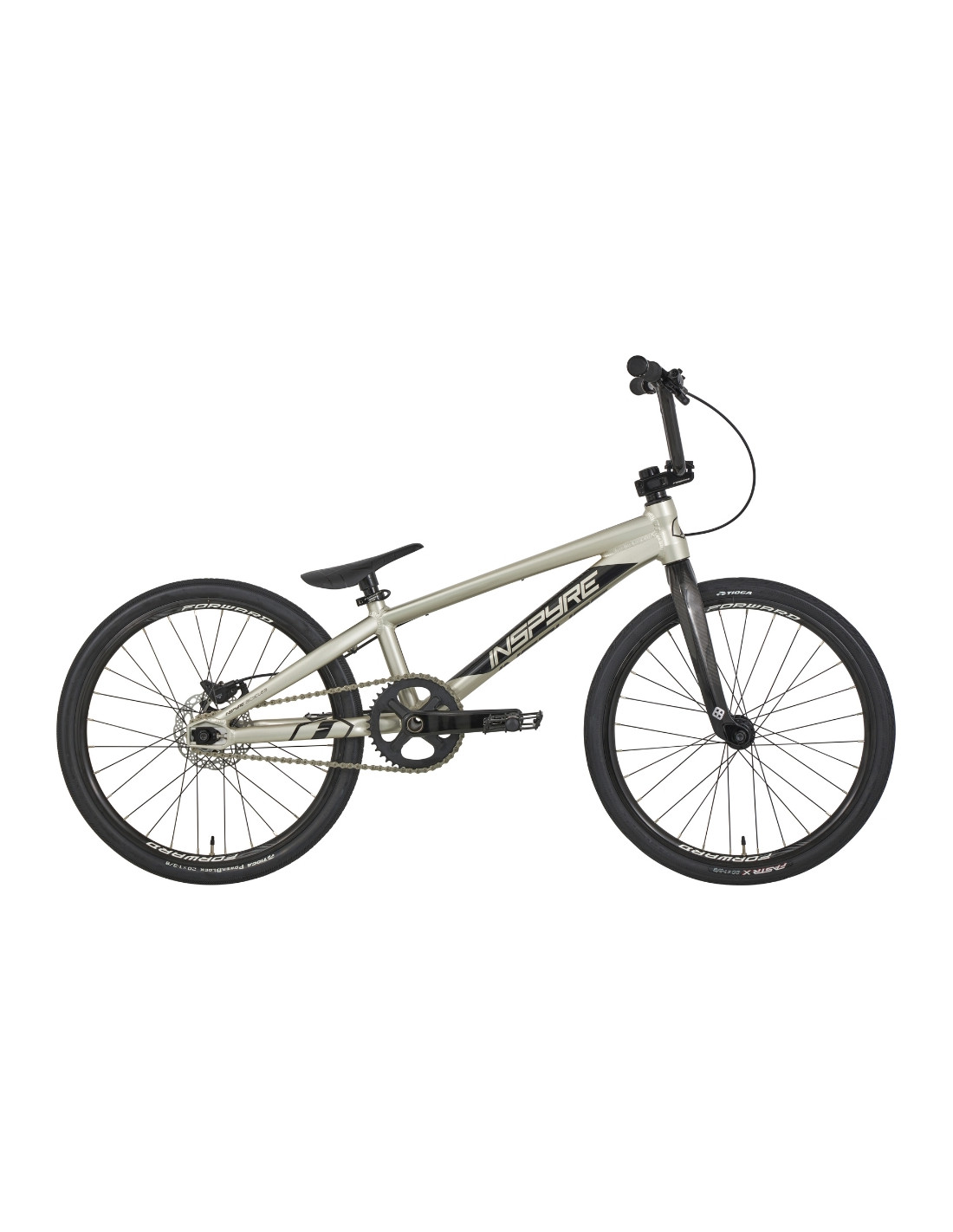 Le vélo s'articule autour du cadre Inspyre Bicycles® Evo-C Disk, un cadre intégrant toutes les spécificités d'un cadre after market haut de gamme. Une fourche carbone pour gagner en performance, rigidité et réactivité. Ses tubes hydroformés en aluminium 6061-T6 garantissent un excellent rapport poids / performance. Sa géométrie lui permet d'être à la fois stable et réactif. Le cadre intègre les dropouts Inspyre Bicycles® Swell. En plus d'apporter de la rigidité à l'arrière du cadre, elle permet d'intégrer la patte de frein à disque Pride Racing®, tout en garantissant une tension de chaîne parfaite.