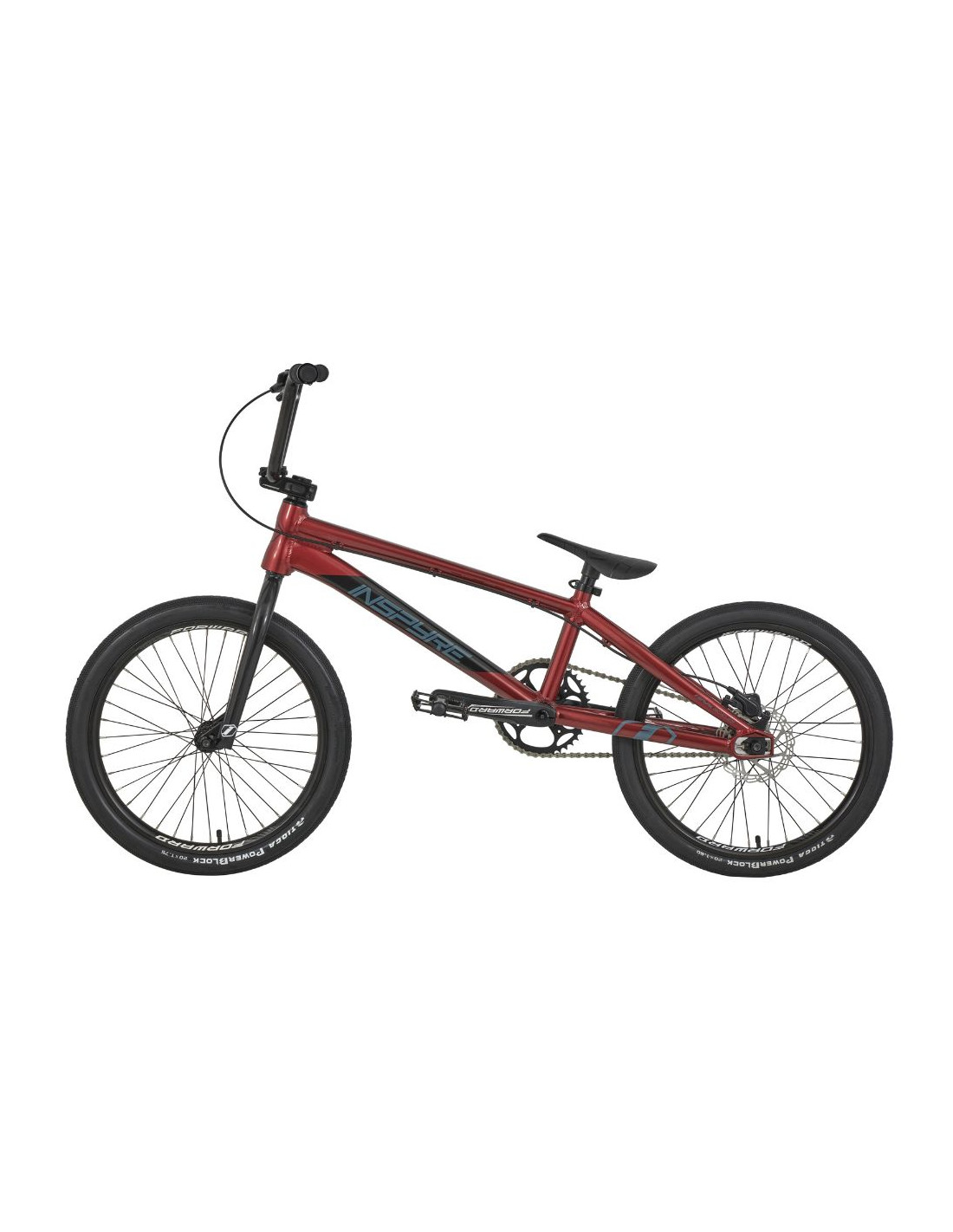 Le vélo se compose autour du cadre Inspyre Bicycles® Evo Disk, il intègre toutes les spécificités d’un cadre BMX Race haut de gamme. Des tubes hydroformés en aluminium 6061-T6 garantissant un excellant rapport poids / performance. Sa géométrie lui permet d’être à la fois stable et réactif. Le cadre intègre les pattes arrière Inspyre Bicycles ® Swell. En plus d’apporter de la rigidité à l’arrière du cadre, ces pattes permettent d’intégrer la patte de frein disque Pride Racing ® tout en offrant une tension de chaîne parfaite.