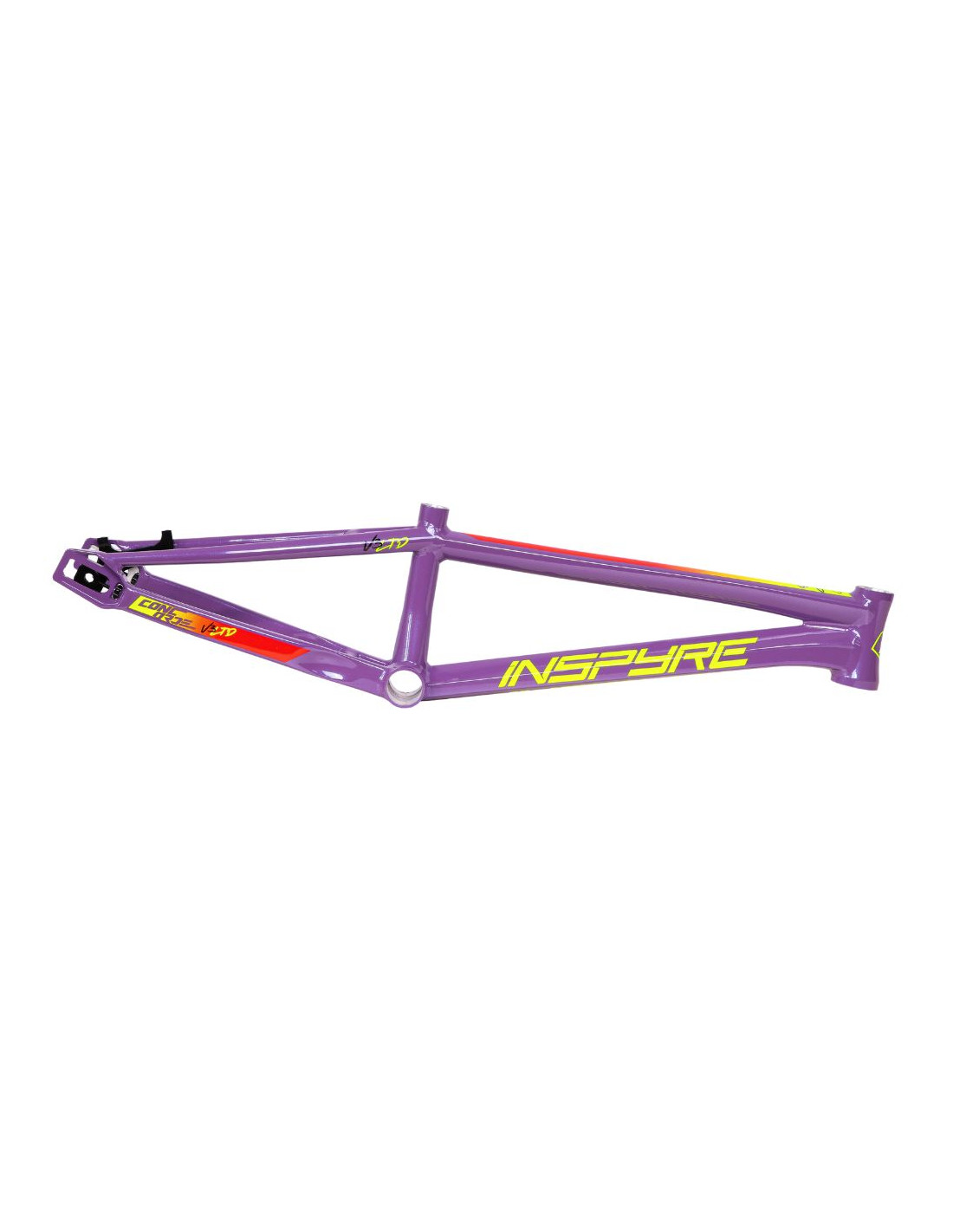 Le Concorde V3 propose de tout nouveaux tubes sur l’ensemble du cadre à l’exception du tube diagonal. Chaque tube de ce cadre a été méticuleusement hydroformé pour atteindre un équilibre optimal entre légèreté, robustesse et aérodynamisme. L'attention portée aux détails se manifeste notamment dans la conception novatrice de l'intersection entre le tube diagonal, le boîtier de pédalier et les bases arrières. Cette intersection, la plus large sur un cadre BMX Race en aluminium actuel, est le fruit d'une ingénierie précise de l'équipe Inspyre.